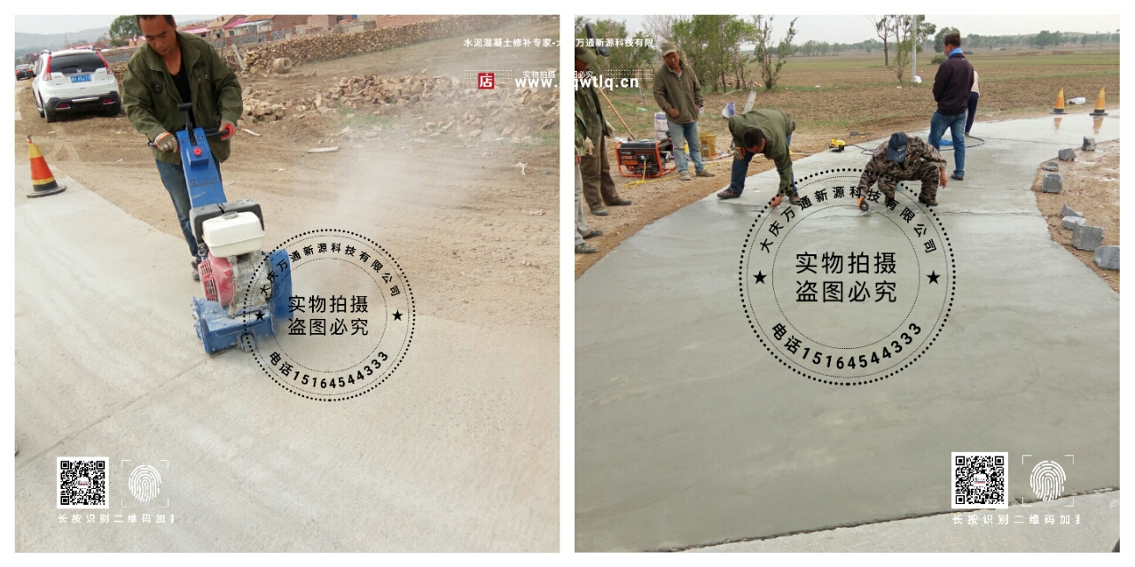大慶萬(wàn)通新源科技有限公司獨(dú)有的混凝土路面高強(qiáng)速補(bǔ)料,是水泥混凝土路面病害修復(fù)的好材料。疲勞、凍融循環(huán)、彎曲壓力、滲水和基層破壞等原因都會(huì)引起水泥路面的破損,從而帶來(lái)高昂的維護(hù)費(fèi)用。與以往的剛性修補(bǔ)方法不同,混凝土水泥路面維修速補(bǔ)膠提供了一種獨(dú)特的柔性修補(bǔ)產(chǎn)品和技術(shù),高柔性、高抗拉性,可跨伸縮縫施工和高抗壓性使得混凝土快補(bǔ)產(chǎn)品為水泥混凝土路面提供了******性的修補(bǔ)。傳統(tǒng)的剛性修補(bǔ)方案,如環(huán)氧砂漿和快干水泥產(chǎn)品,由于其自身的粘結(jié)失效,抗疲勞性低以及與原路面不同的伸縮系數(shù),修補(bǔ)面會(huì)在短時(shí)間內(nèi)失效或產(chǎn)生新的裂縫,需要反復(fù)修補(bǔ),有效期短且費(fèi)用高昂。大慶萬(wàn)通新源科技有限公司的混凝土水泥路面維修速補(bǔ)膠可以隨原路面一起伸縮,移動(dòng),從而避免了粘結(jié)失效和產(chǎn)生新裂縫。萬(wàn)通快補(bǔ)產(chǎn)品優(yōu)異的粘結(jié)性、柔韌性和高防滑性,特別適用于水泥路面的淺層粘合修補(bǔ),多邊角混凝土板層修補(bǔ),跨伸縮縫修補(bǔ)以及路面沉陷修補(bǔ)。萬(wàn)通混凝土病害修補(bǔ)料針對(duì)混凝土起皮起沙、斷板裂縫、蜂窩麻面、坑槽露石子、漏筋掉皮、橋梁的掉皮漏筋快速通車使用時(shí)間長(zhǎng)。應(yīng)用萬(wàn)通快補(bǔ)產(chǎn)品,施工后一天就可以恢復(fù)交通。大慶萬(wàn)通新源科技有限公司的萬(wàn)通水泥路面維修速補(bǔ)膠適用于高速公路、機(jī)場(chǎng)路面、農(nóng)村村村通路面、廠坪、學(xué)校操場(chǎng)、市區(qū)公路、小區(qū)路面、橋梁、水泥路面的修補(bǔ)。使用萬(wàn)通特快補(bǔ)材料修補(bǔ)路面可以一勞永逸! 水泥地面起砂怎么辦,混凝土修補(bǔ)劑混凝土地面起砂,混凝土地面修補(bǔ),地面起砂怎么辦,